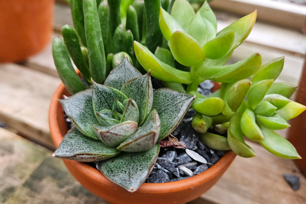 The perfect plants for a lazy gardener, succulents need sun; well-drained, gritty soil; low water; and low fertilizer. As long as I keep them in a bright location and water once a week until the water runs out, I should have beautiful succulent plants. If I up-pot my succulents, I need to mimic the original soil structure to get the preferred drainage. Neglect equals success!
